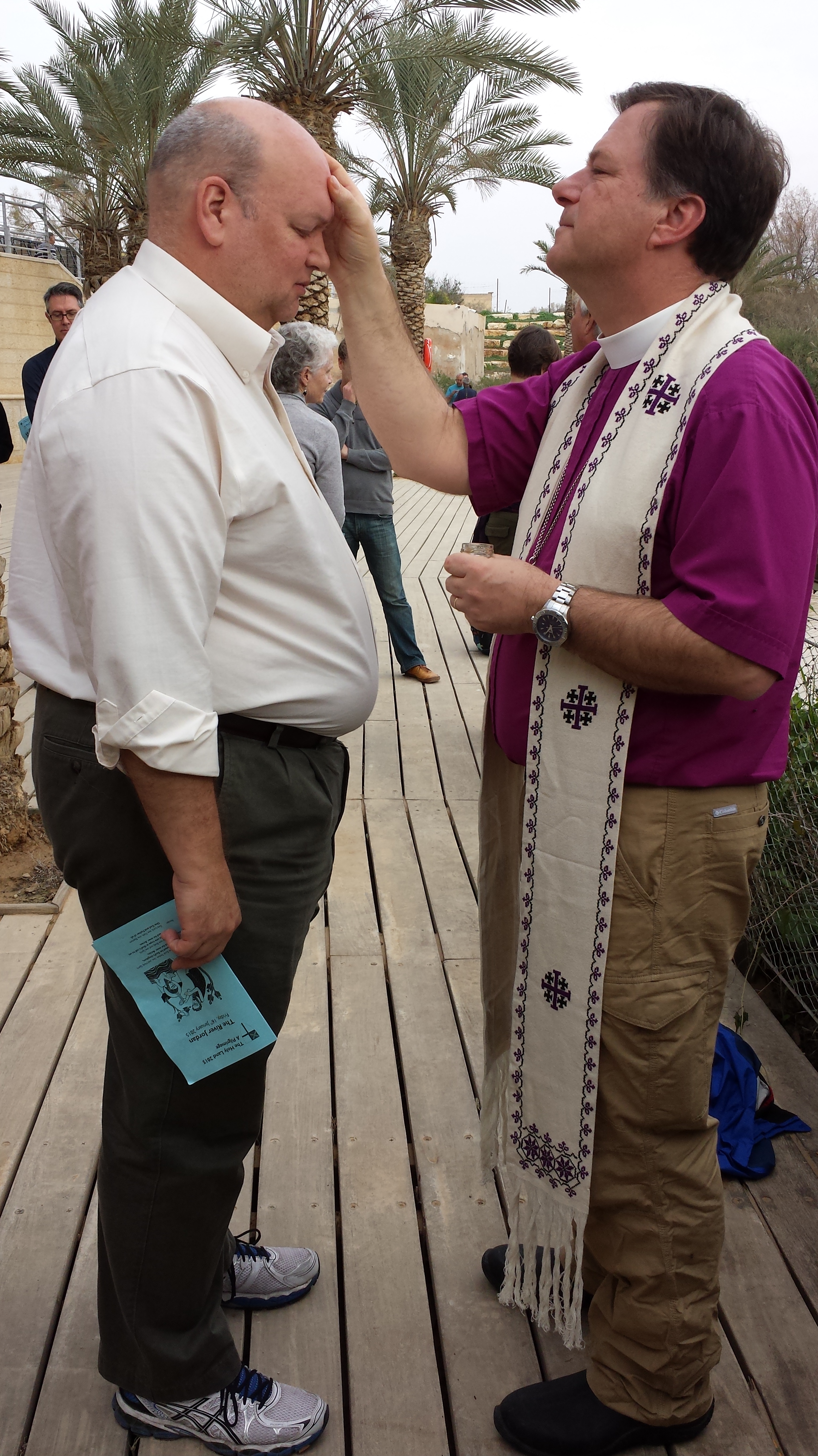 Pilgrims from the diocese of Olympia hanging out in the very cold waters of the Jordan River.