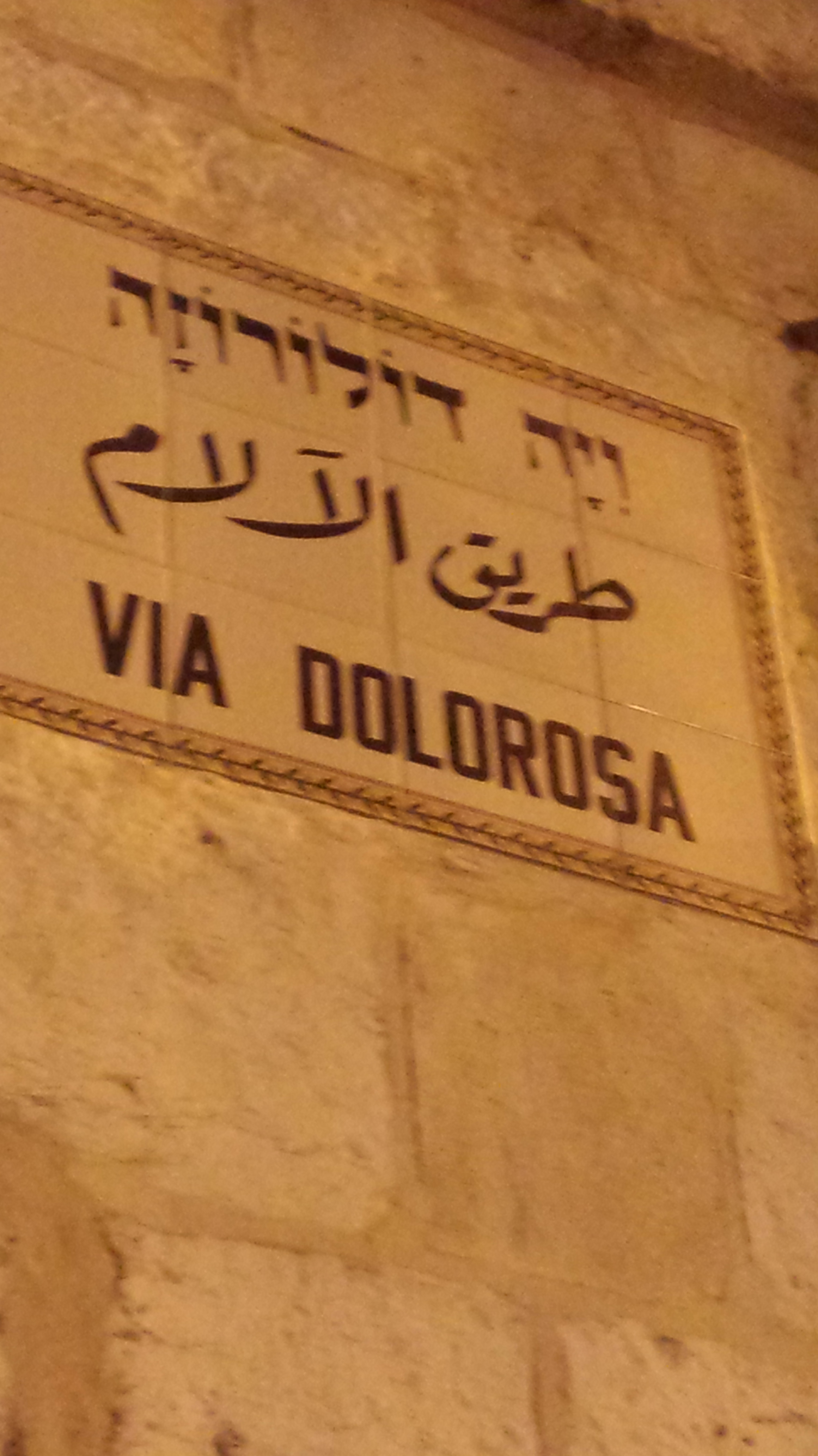 After our time at St. Anne’s and site of Bethesda, we began our pilgrim’s journey on the Via Dolorosa by holding a Eucharistic service in the chapel of the Ecce Homo Convent. Dominic gave an excellent (and musical) sermon, with Bishop Barry presiding. To hear the composition by Gavin Bryars Feat (with Tom Waits) supporting the lyrics sung by an old unknown homeless man and recorded on the streets of London (living rough in the area around Elephant and Castle and Waterloo Station), go to https://www.youtube.com/watch?v=gT0wonCq_MY – the simple words are: “Jesus’ blood never failed me yet, never failed me yet. Jesus’ blood never failed me yet. This one thing I know, for he loves me so…”