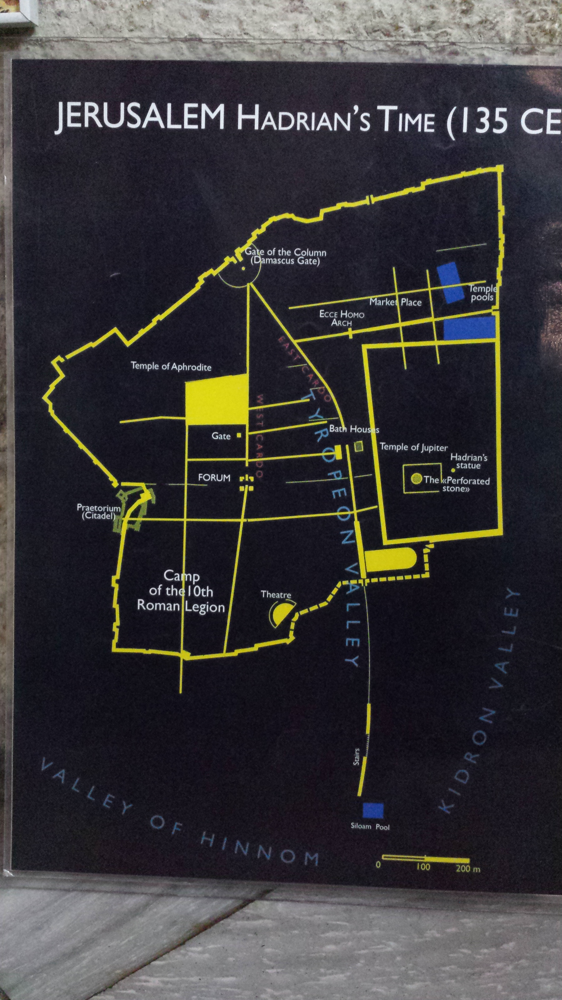 A map showing that at the time of Jesus’ crucifixion, the location was outside the city wall.