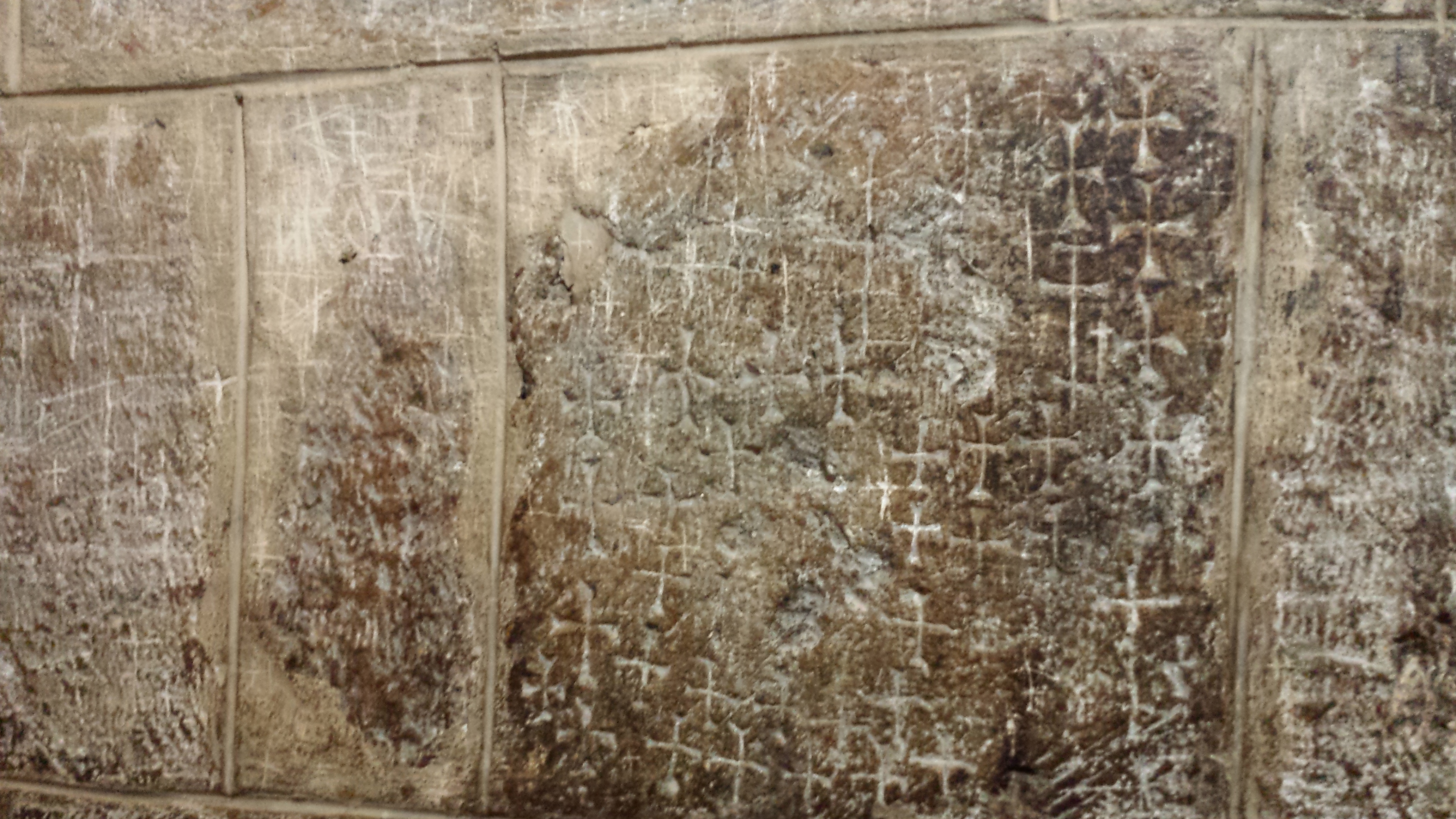 Crusader crosses etched into the walls of the oldest portion of the Holy Sepulcher church