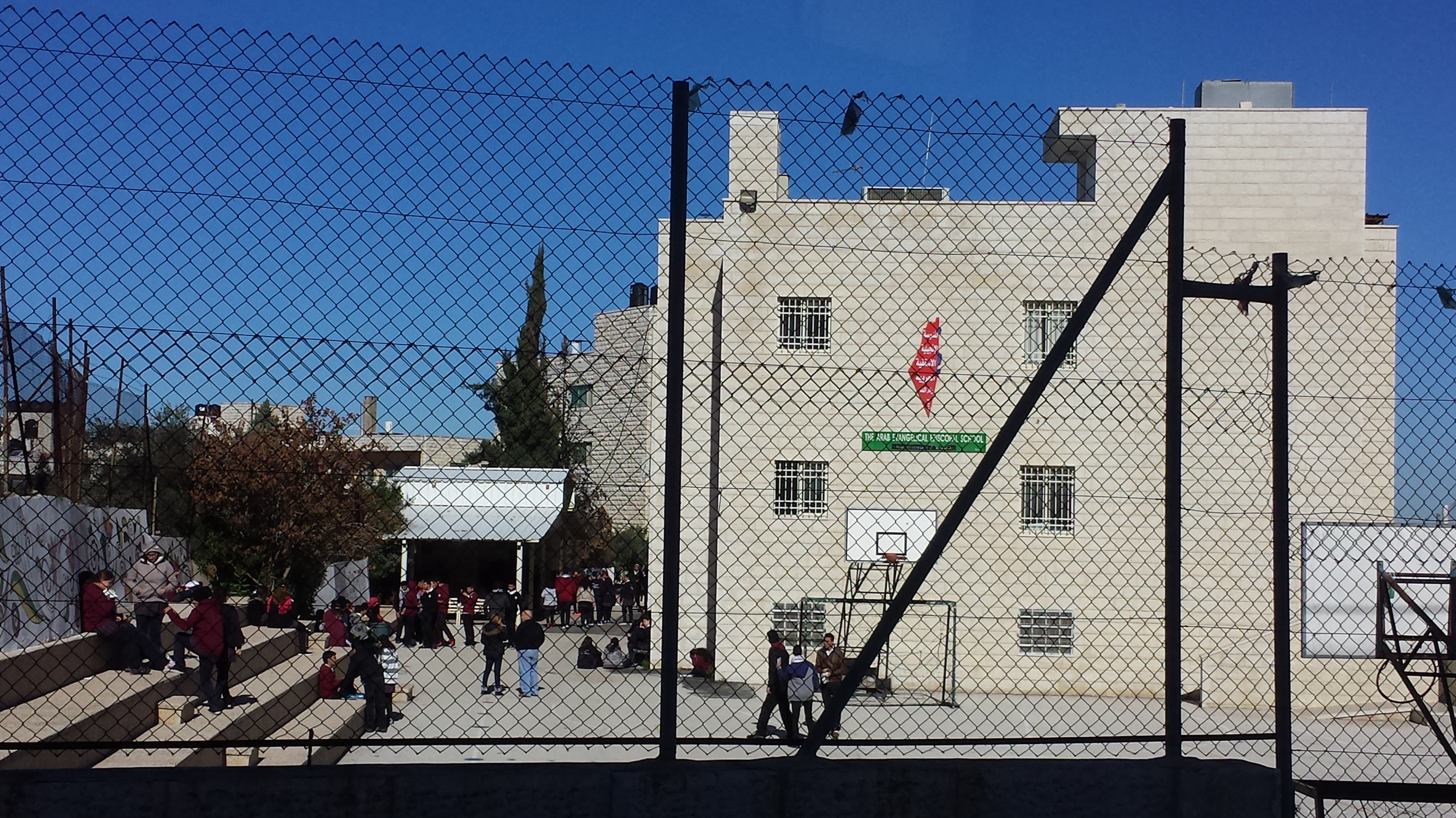After some time of driving through the busy city center, we arrived at our first destination – a meeting with Iyad Rafidi at the Arab Evangelical Episcopal School in Ramallah. Iyad is the director of the school. As a Christian private school, the school has much to offer to the whole community and is largely considered one of the best schools in the area. The school believes that fulfilling its Christian mission comes through serving the Palestinian community in all its diversity, regardless of religion, race, gender, abilities and socioeconomic status of the person. The school also seeks to educate Palestinian generations to become active citizens who participate in developing a humanistic and democratic society, enhancing religious and national heritage in Palestine, and promoting mutual understanding and tolerance among religions and cultures.